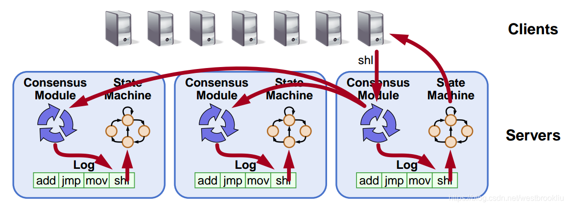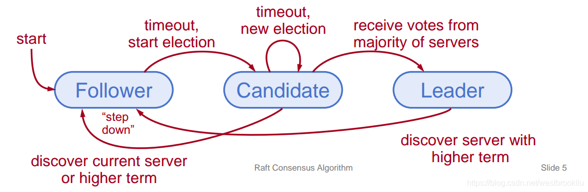 - 在任意时刻,每个服务器只能是以下三种状态之一: