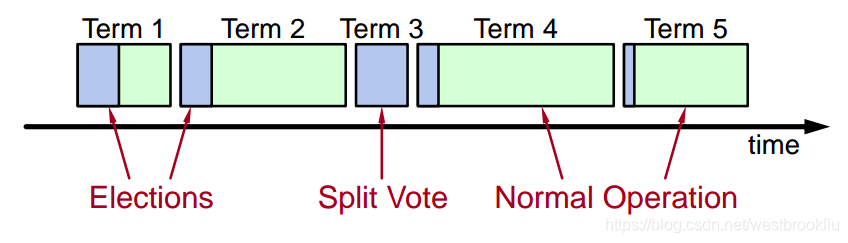 - 有些 term 可能没有 leader (选举失败:比如刚好每个服务器都同时变成了 candidate)