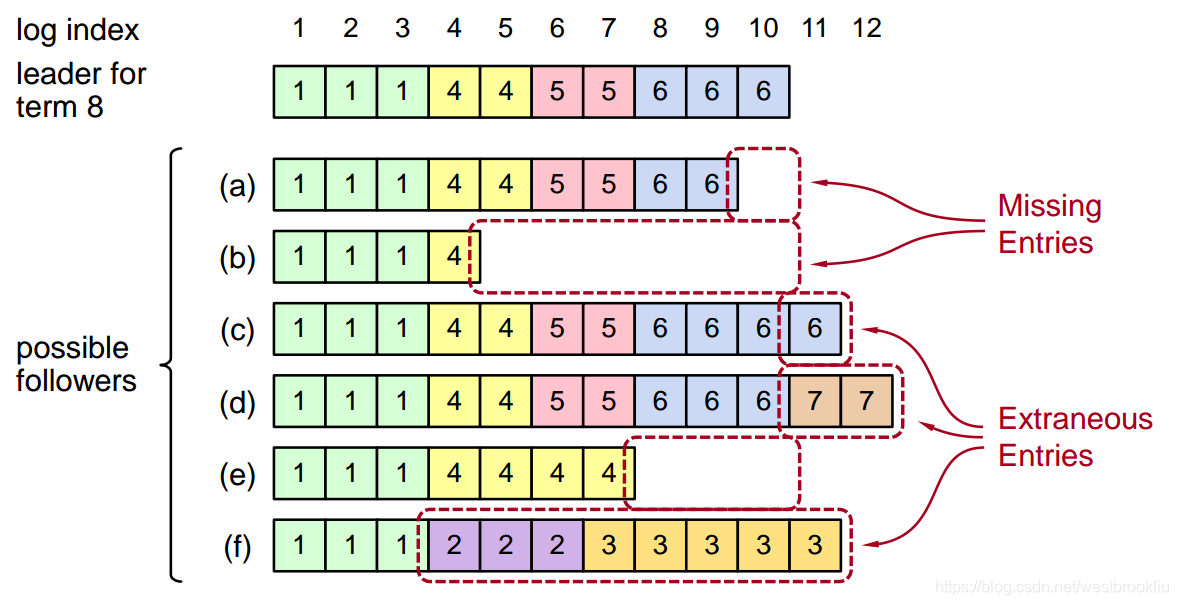 - 新 leader 必须让 follower 的日志与它自己的保持一致