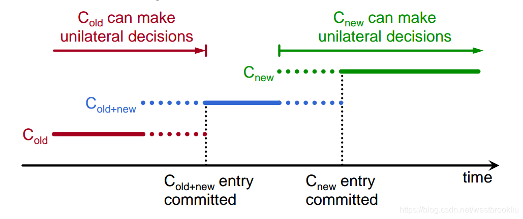 - 中间阶段采用共同一致性(需要老和新的配置的大多数来选举和提交)